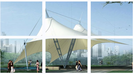張拉膜結(jié)構(gòu)造型設(shè)計(jì)往往體現(xiàn)著工程設(shè)計(jì)師各式各樣的想法,對(duì)此難免會(huì)涉及到一些膜面拉伸性比較大的造型,對(duì)于膜材伸張以及相關(guān)的拉伸性動(dòng)作都是不小