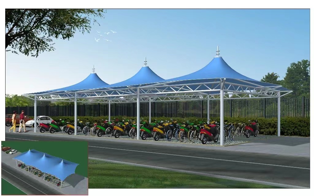 詳情膜結(jié)構(gòu)車(chē)棚是一種采用膜材料和鋼結(jié)構(gòu)相結(jié)合的創(chuàng)新建筑形式,因其輕質(zhì)、高強(qiáng)度、造型獨(dú)特以及安裝方便等優(yōu)點(diǎn),已經(jīng)被廣泛應(yīng)用于多個(gè)領(lǐng)域。隨著現(xiàn)代城市建設(shè)的不斷發(fā)展,膜結(jié)構(gòu)車(chē)棚在各類(lèi)場(chǎng)所的應(yīng)